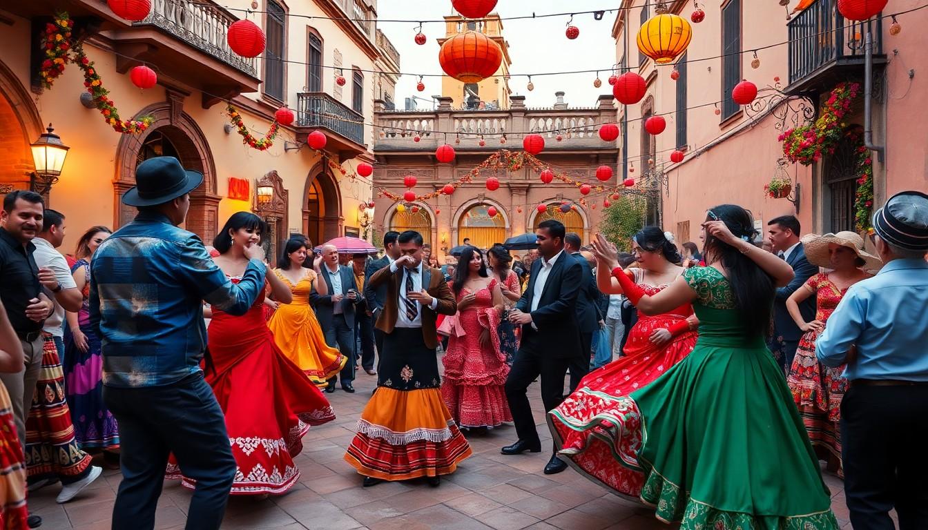 Southern Spain highlights vibrant family gatherings that embrace music and dance. The “Feria de Abril” in Seville presents families in colorful traditional attire, enjoying flamenco performances together. Important life events, such as weddings, are celebrated with lively receptions filled with local customs. Families also partake in “Semana Santa” observances, fostering unity through religious processions. Traditional dishes like gazpacho bring everyone together at mealtime, showcasing regional flavors. These cultural elements combine to create lasting memories cherished by families across generations.